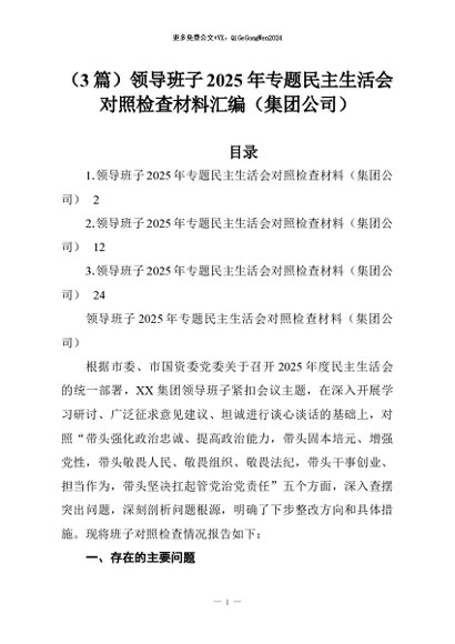 【七哥公文】2026年:(3篇)领导班子2025年专题民主生活会对照检查材料汇编(集团公司)_副本+更多免费公文+VX:QiGeGongWen2024