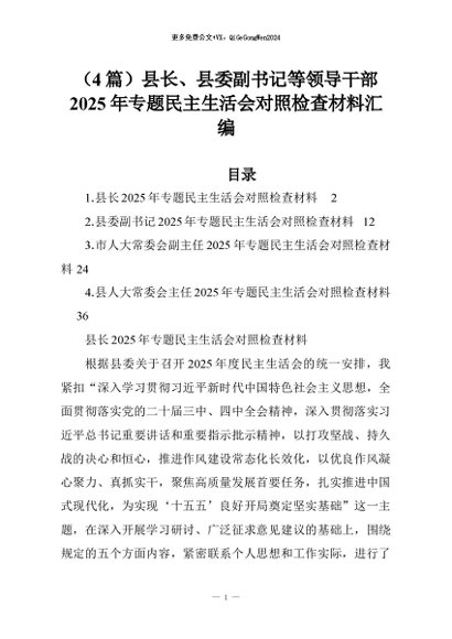 【七哥公文】2026年:(4篇)县长、县委副书记等领导干部2025年专题民主生活会对照检查材料汇编_副本+更多免费公文+VX:QiGeGongWen2024
