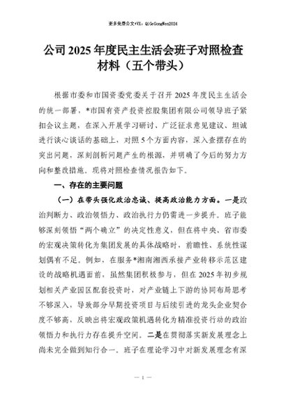 【七哥公文】2026年:公司2025年度民主生活会班子对照检查材料(五个带头)_副本+更多免费公文+VX:QiGeGongWen2024