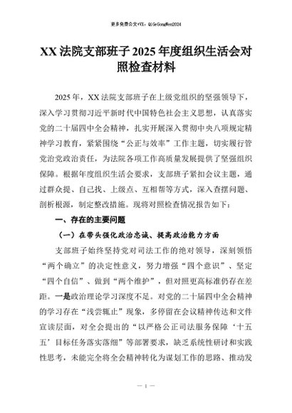 【七哥公文】2026年:XXX法院支部班子2025年度组织生活会对照检查材料_副本+更多免费公文+VX:QiGeGongWen2024