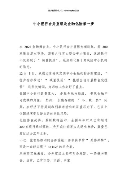 / 【七哥公文】2026年:中小银行合并重组是金融化险第一步_副本+更多免费公文+VX:QiGeGongWen2024