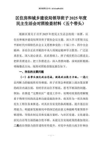 【七哥公文】2026年:区住房和城乡建设局领导班子2025年度民主生活会对照检查材料(五个带头)_副本+更多免费公文+VX:QiGeGongWen2024
