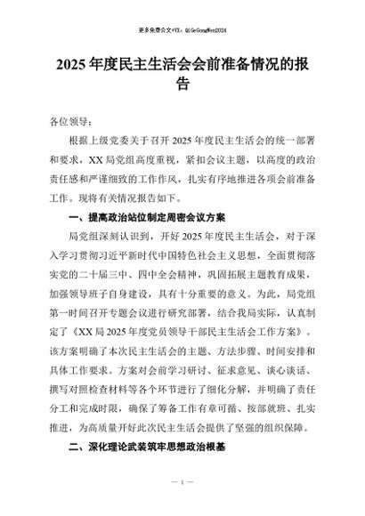 / 【七哥公文】2026年:2025年度民主生活会会前准备情况的报告_副本+更多免费公文+VX:QiGeGongWen2024