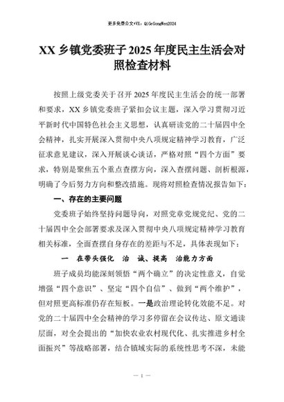 【七哥公文】2026年:XX乡镇党委班子2025年度民主生活会对照检查材料_副本+更多免费公文+VX:QiGeGongWen2024