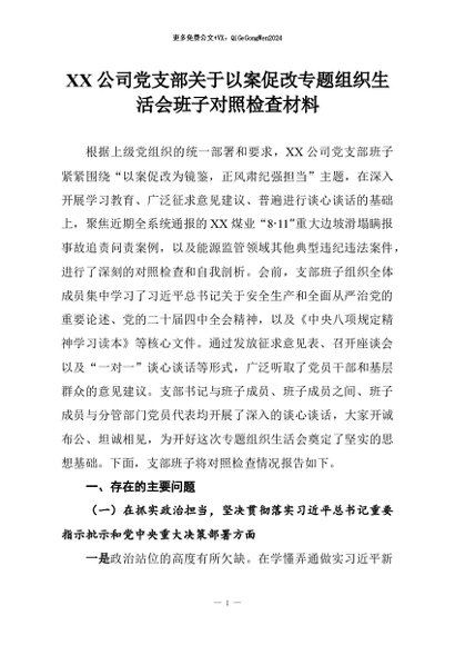 【七哥公文】2026年:XX公司党支部关于以案促改专题组织生活会班子对照检查材料_副本+更多免费公文+VX:QiGeGongWen2024