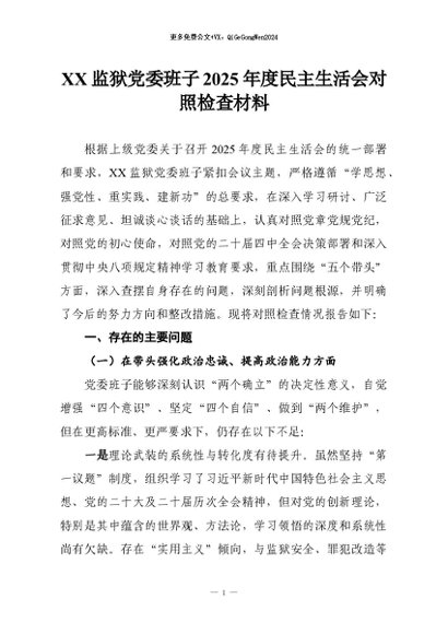 【七哥公文】2026年:XX监狱党委班子2025年度民主生活会对照检查材料_副本+更多免费公文+VX:QiGeGongWen2024