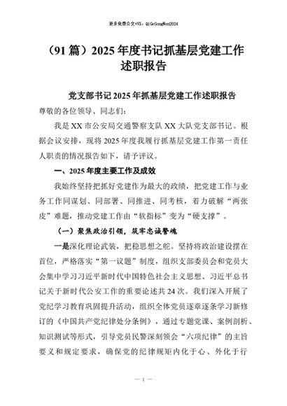 【七哥公文】2026年:(91篇)2025年度书记抓基层党建工作述职报告_副本+更多免费公文+VX:QiGeGongWen2024