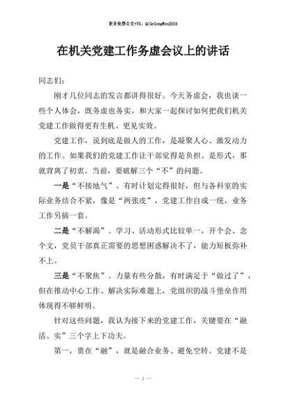 / 【七哥公文】2026年:在机关党建工作务虚会议上的讲话+更多免费公文+VX:QiGeGongWen2024