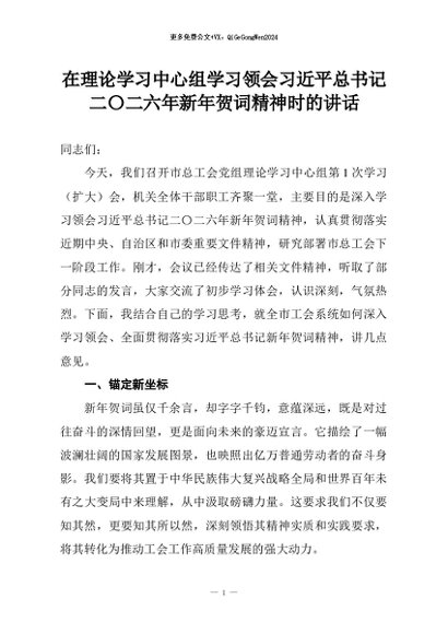 【七哥公文】2026年:在理论学习中心组学习领会习近平总书记二〇二六年新年贺词精神时的讲话+更多免费公文+VX:QiGeGongWen2024