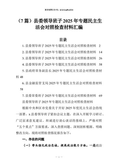 【七哥公文】2026年:(7篇)县委领导班子2025年专题民主生活会对照检查材料汇编_副本+更多免费公文+VX:QiGeGongWen2024