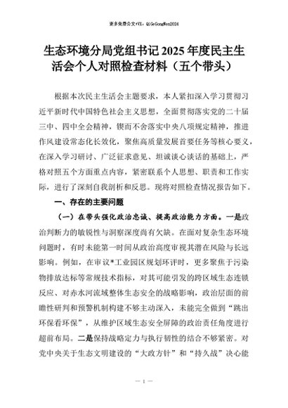 【七哥公文】2026年:生态环境分局党组书记2025年度民主生活会个人对照检查材料(五个带头)_副本+更多免费公文+VX:QiGeGongWen2024