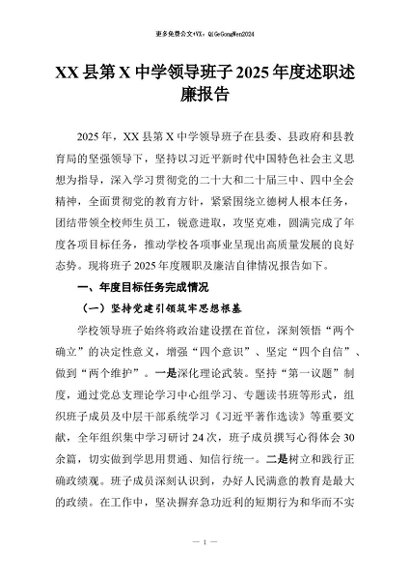 【七哥公文】2026年:XX县第X中学领导班子2025年度述职述廉报告_副本+更多免费公文+VX:QiGeGongWen2024