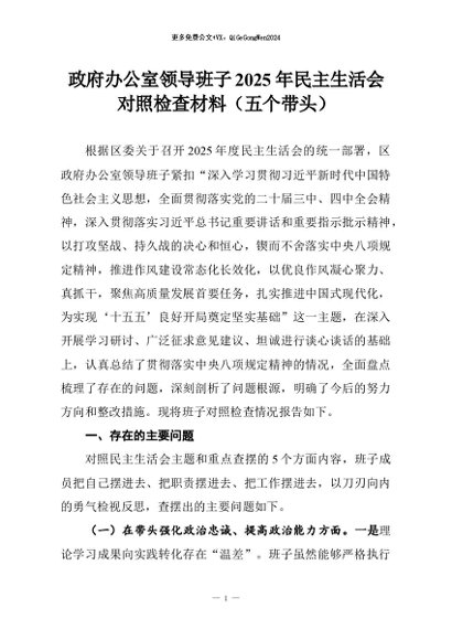 【七哥公文】2026年:政府办公室领导班子2025年民主生活会对照检查材料(五个带头)_副本+更多免费公文+VX:QiGeGongWen2024
