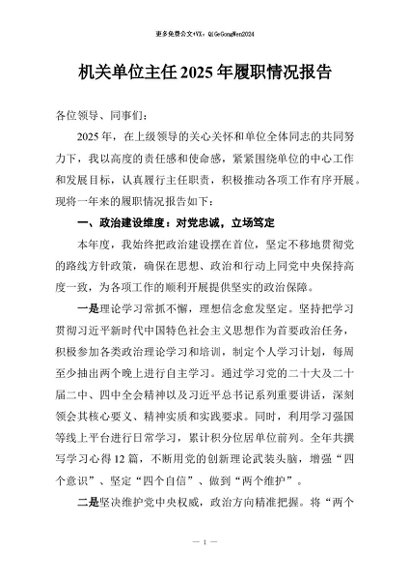/ 【七哥公文】2026年:机关单位主任2025年履职情况报告+更多免费公文+VX:QiGeGongWen2024