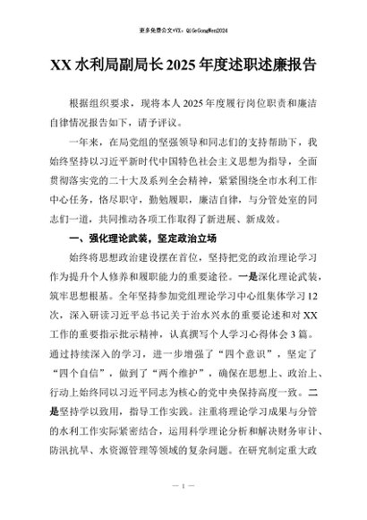 / 【七哥公文】2026年:XX水利局副局长2025年度述职述廉报告_副本+更多免费公文+VX:QiGeGongWen2024