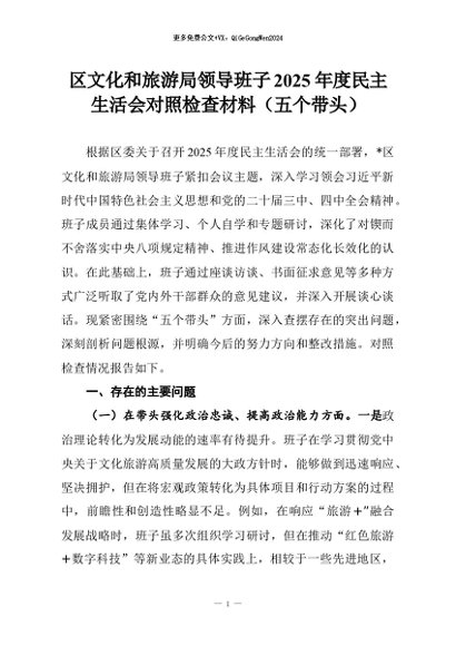 【七哥公文】2026年:区文化和旅游局领导班子2025年度民主生活会对照检查材料(五个带头)_副本+更多免费公文+VX:QiGeGongWen2024