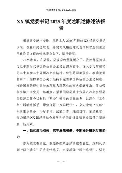 【七哥公文】2026年:XX镇党委书记2025年度述职述廉述法报告_副本+更多免费公文+VX:QiGeGongWen2024