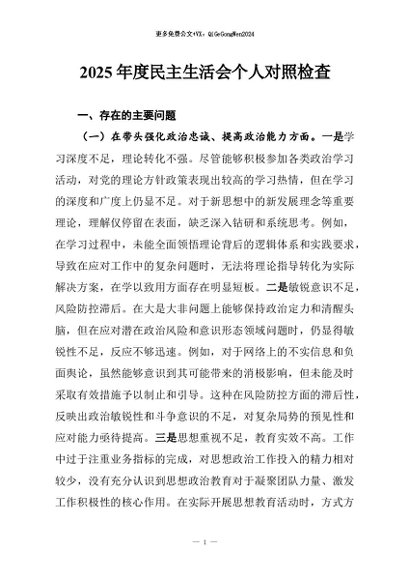 / 【七哥公文】2026年:2025年度民主生活会个人对照检查_副本+更多免费公文+VX:QiGeGongWen2024