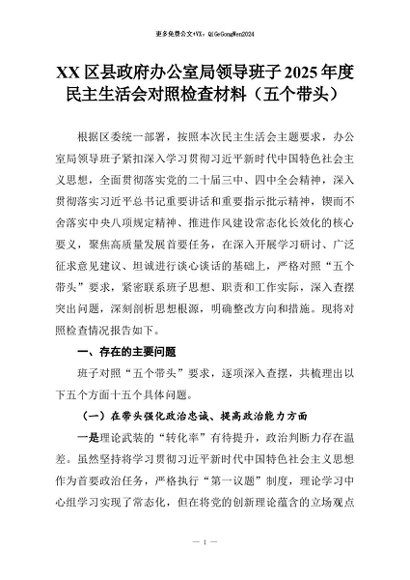 【七哥公文】2026年:XX区县政府办公室局领导班子2025年度民主生活会对照检查材料(五个带头)_副本+更多免费公文+VX:QiGeGongWen2024