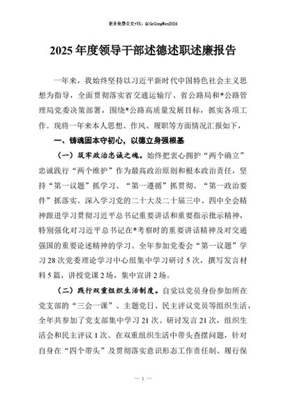 / 【七哥公文】2026年:2025年度领导干部述德述职述廉报告_副本+更多免费公文+VX:QiGeGongWen2024