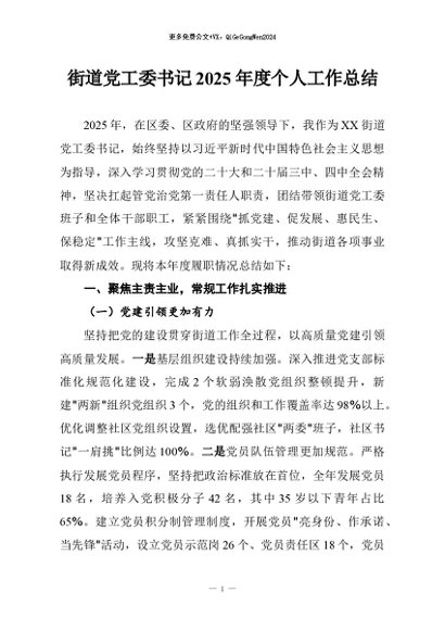 / 【七哥公文】2026年:街道党工委书记2025年度个人工作总结_副本+更多免费公文+VX:QiGeGongWen2024