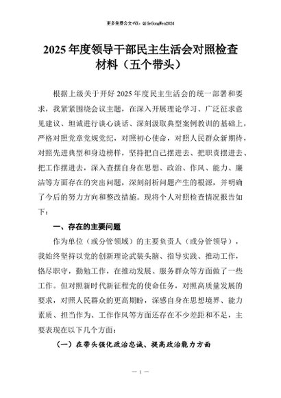 【七哥公文】2026年:2025年度领导干部民主生活会对照检查材料(五个带头)_副本+更多免费公文+VX:QiGeGongWen2024