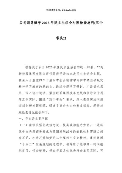 【七哥公文】2026年:公司领导班子2025年民主生活会对照检查材料(五个带头)2_副本+更多免费公文+VX:QiGeGongWen2024