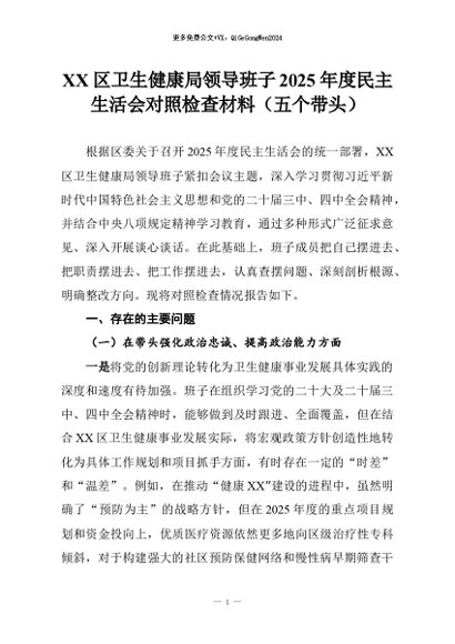 【七哥公文】2026年:XX区卫生健康局领导班子2025年度民主生活会对照检查材料(五个带头)_副本+更多免费公文+VX:QiGeGongWen2024