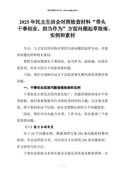 【七哥公文】2026年:2025年民主生活会对照检查材料“带头干事创业、担当作为”方面问题起草指南、实例和素材_副本+更多免费公文+VX:QiGeGongWen2024
