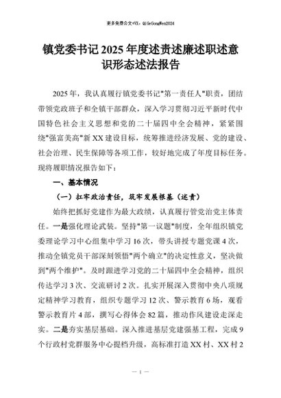 【七哥公文】2026年:镇党委书记2025年度述责述廉述职述意识形态述法报告_副本+更多免费公文+VX:QiGeGongWen2024