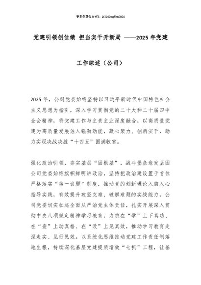 【七哥公文】2026年:党建引领创佳绩 担当实干开新局 ——2025年党建工作综述(公司)_副本+更多免费公文+VX:QiGeGongWen2024