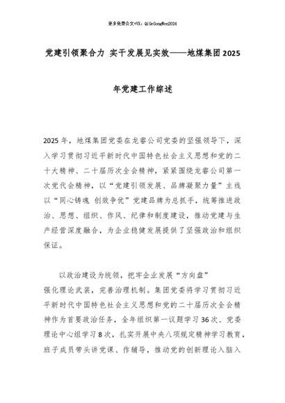 【七哥公文】2026年:党建引领聚合力 实干发展见实效——地煤集团2025年党建工作综述_副本+更多免费公文+VX:QiGeGongWen2024
