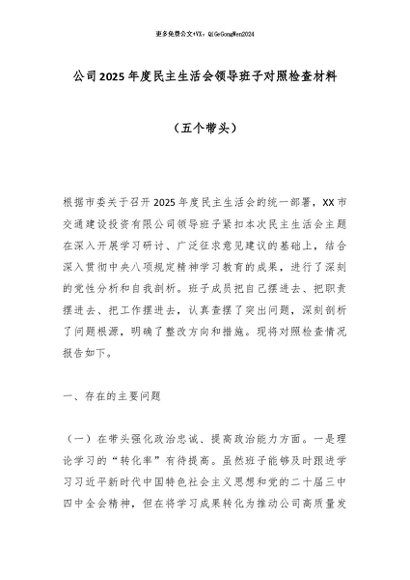 【七哥公文】2026年:公司2025年度民主生活会领导班子对照检查材料(五个带头)_副本+更多免费公文+VX:QiGeGongWen2024