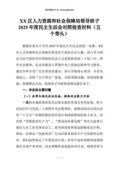 【七哥公文】2026年:XX区人力资源和社会保障局领导班子2025年度民主生活会对照检查材料(五个带头)_副本+更多免费公文+VX:QiGeGongWen2024