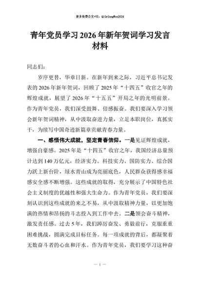 / 【七哥公文】2026年:青年党员学习2026年新年贺词学习发言材料+更多免费公文+VX:QiGeGongWen2024