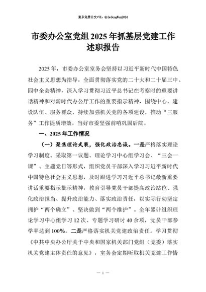 【七哥公文】2026年:市委办公室党组2025年抓基层党建工作述职报告_副本+更多免费公文+VX:QiGeGongWen2024
