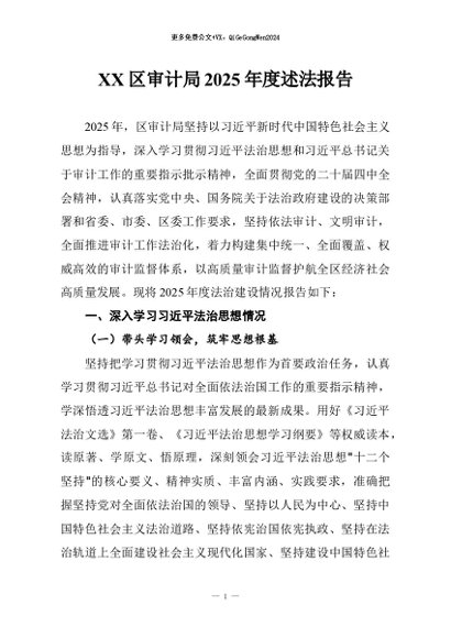 / 【七哥公文】2026年:XX区审计局2025年度述法报告_副本+更多免费公文+VX:QiGeGongWen2024