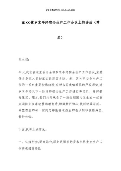 【七哥公文】2026年:在XX镇岁末年终安全生产工作会议上的讲话(精品)_副本+更多免费公文+VX:QiGeGongWen2024