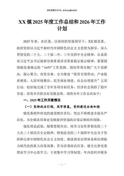 【七哥公文】2026年:XX镇2025年度工作总结和2026年工作计划_副本+更多免费公文+VX:QiGeGongWen2024