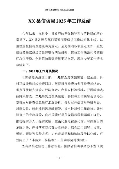 / 【七哥公文】2026年:XX县信访局2025年工作总结_副本+更多免费公文+VX:QiGeGongWen2024