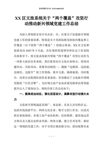 【七哥公文】2026年:XX区文旅系统关于“两个覆盖”攻坚行动推动新兴领域党建工作总结_副本+更多免费公文+VX:QiGeGongWen2024