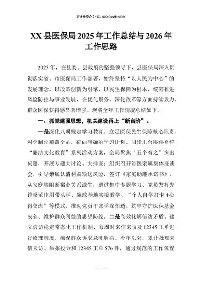 【七哥公文】2026年:XX县医保局2025年工作总结与2026年工作思路_副本+更多免费公文+VX:QiGeGongWen2024