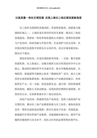 【七哥公文】2026年:以高质量一体化引领发展 共筑上海长三角区域发展新高度+更多免费公文+VX:QiGeGongWen2024