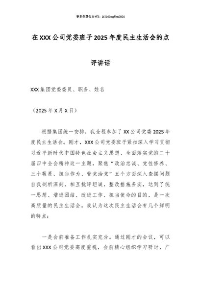 【七哥公文】2026年:在XXX公司党委班子2025年度民主生活会的点评讲话_副本+更多免费公文+VX:QiGeGongWen2024