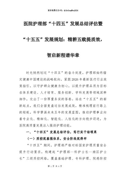 【七哥公文】2026年:医院护理部“十四五”发展总结评估暨“十五五”发展规划:精耕五载提质效,智启新程谱华章+更多免费公文+VX:QiGeGongWen2024