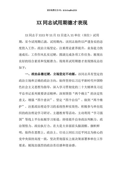 【七哥公文】2026年:XX同志试用期德才表现+更多免费公文+VX:QiGeGongWen2024