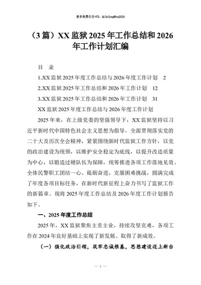 【七哥公文】2026年:(3篇)XX监狱2025年工作总结和2026年工作计划汇编+更多免费公文+VX:QiGeGongWen2024