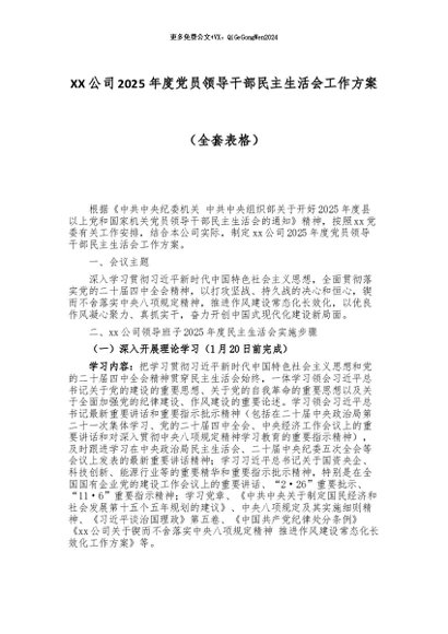 【七哥公文】2026年:XX公司2025年度党员领导干部民主生活会工作方案(全套表格)_副本+更多免费公文+VX:QiGeGongWen2024
