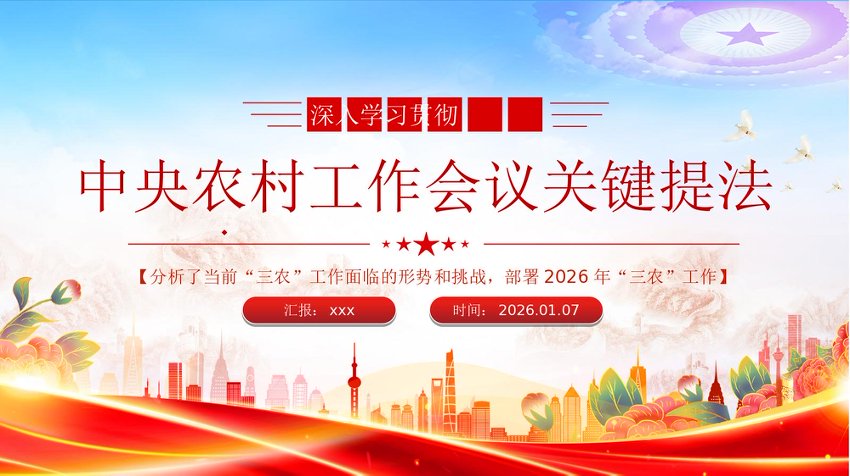 / 【七哥公文】2026年:三农党课PPT课件:中央农村工作会议关键提法+更多免费公文+VX:QiGeGongWen2024