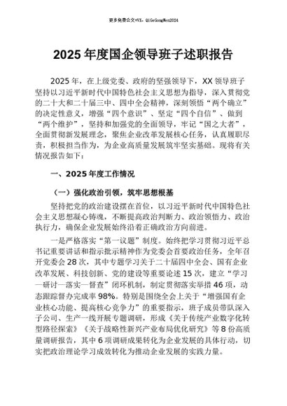 / 【七哥公文】2026年:2025年度国企领导班子述职报告+更多免费公文+VX:QiGeGongWen2024